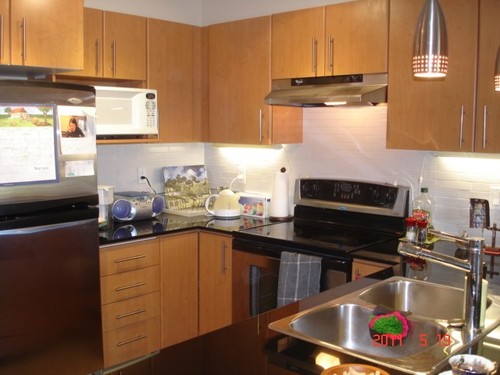 Four years old 1 bdrm + den in centrally located "Touchstone." Overlooking Haywood Park, this unit features an open concept layout. Main features: cozy fireplace, granite kitchen counters, stainless steel appliances. One parking and one storage locker included. Rental and pets are welcome. Walking distance to Capilano Mall and public transportation. This unit was previously rented at $1,400/mo.